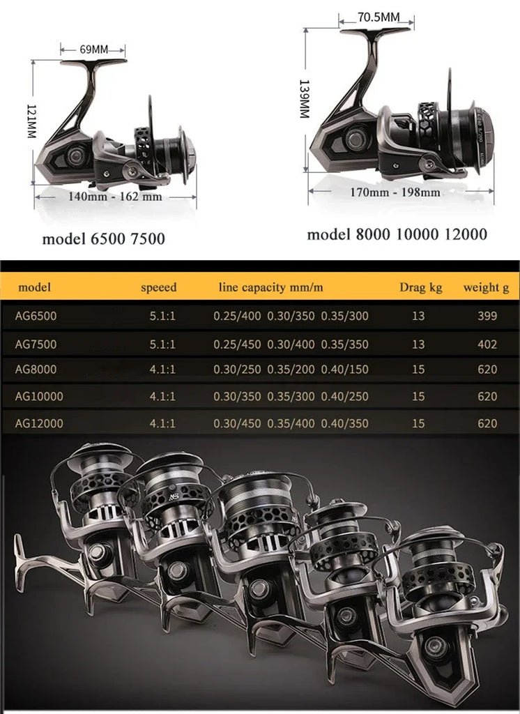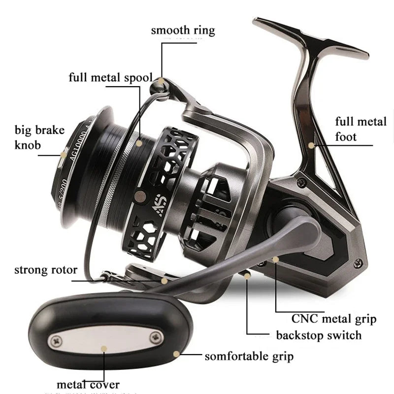 Full Metal Fishing Spinning Reel 8000 Saltwater Surfcasting Reel 12000 Sea Fishing Badge Reels Carping Fishing Gear