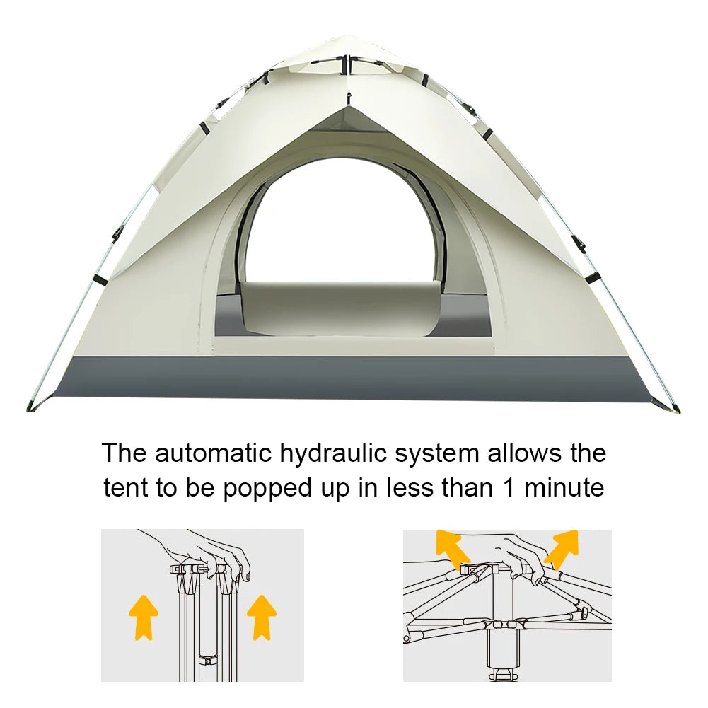 1. Instant Setup Convenience: Experience hassle-free camping with this quick open tent featuring an automatic hydraulic system. Set up in just one minute without any special skills required. The innovative design surpasses traditional tents, offering a seamless outdoor experience. Enjoy more time exploring and less time setting up your shelter.