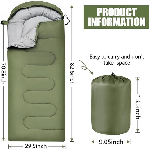 - It has multi-functionality in various situations: convenient to carry and easy to store. It is suitable for all outdoor activities, such as camping, hiking, backpacking, cycling, and even survival. Even in extreme conditions, it can keep you warm. These bags are not only suitable for cold environments, but also for warm weather. Our sleeping bags are designed for those who want to have a portable and comfortable outdoor camping sleeping bag. With it, you can enjoy outdoor activities more easily. Each sleeping bag comes with a compression bag with shoulder straps, which makes it easy to store and carry.